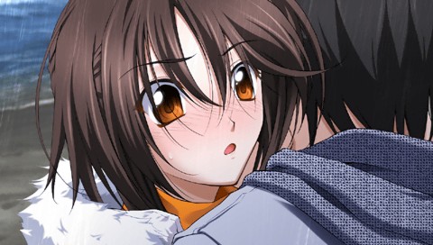 下著雨,兩人在海灘邊,這邊通過視點切換能夠十分了解兩人各自的想法